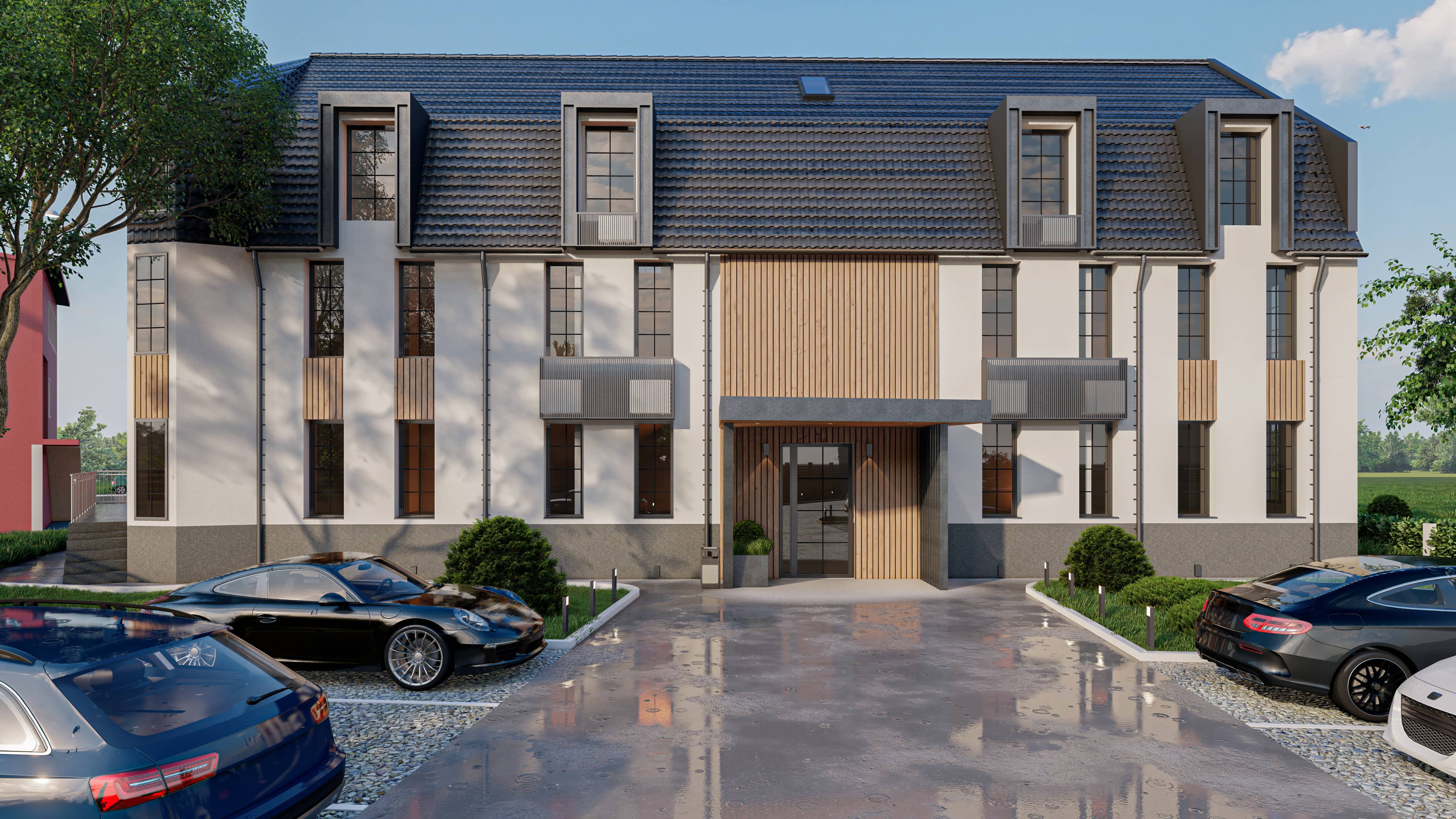Sam objekat je zadržao svoj oblik sa klasičnim jednostavnim dvovodnim krovom.