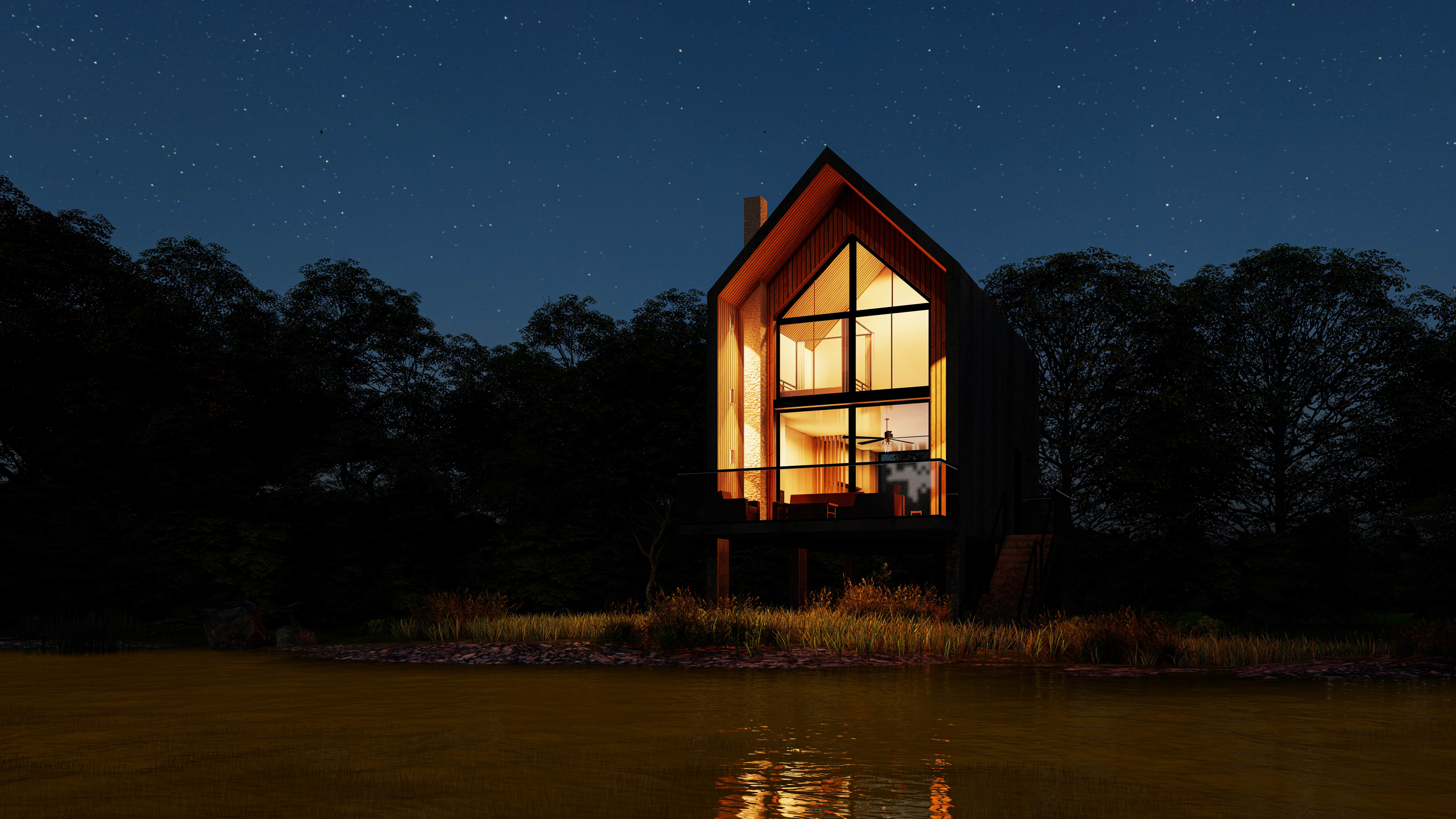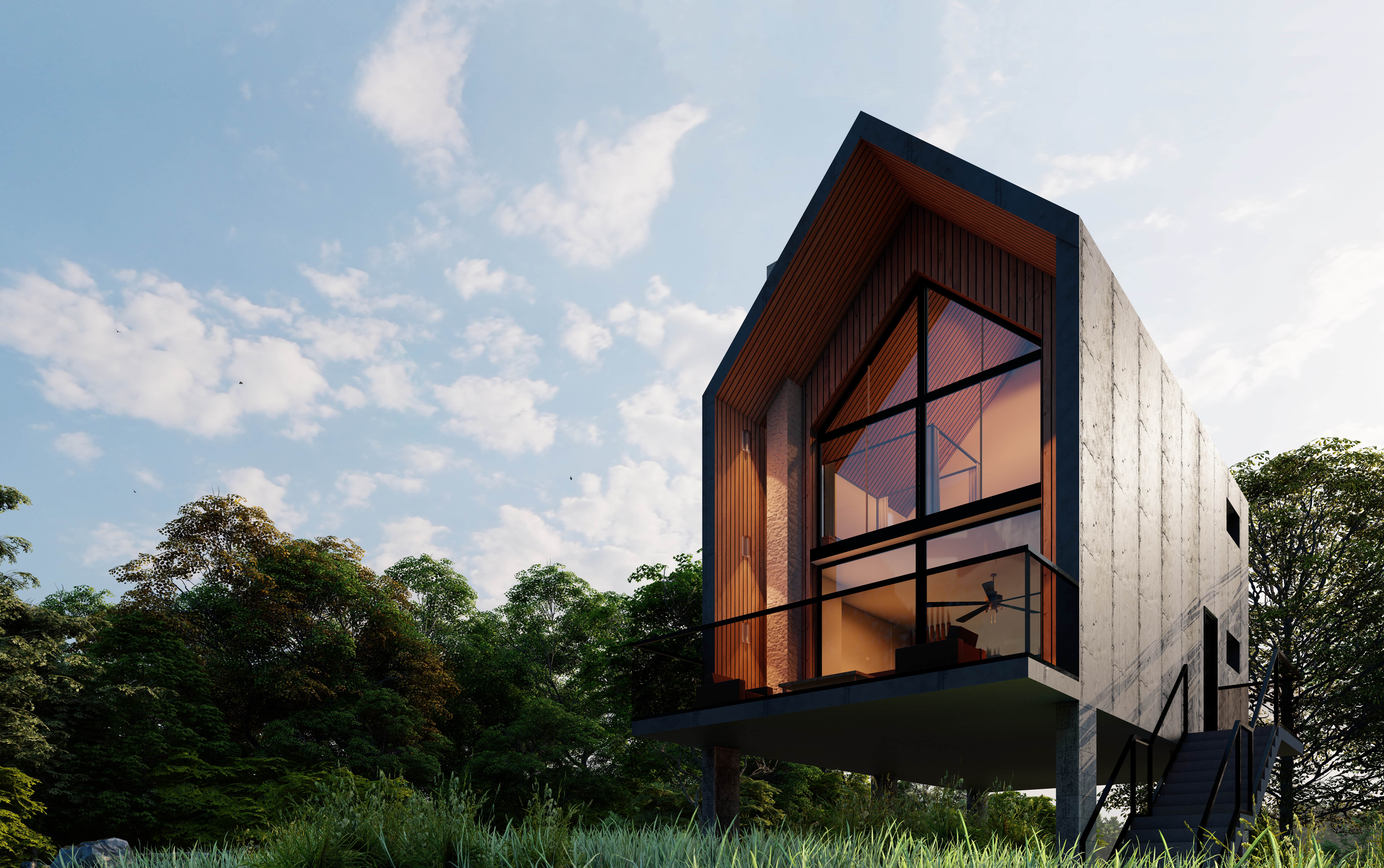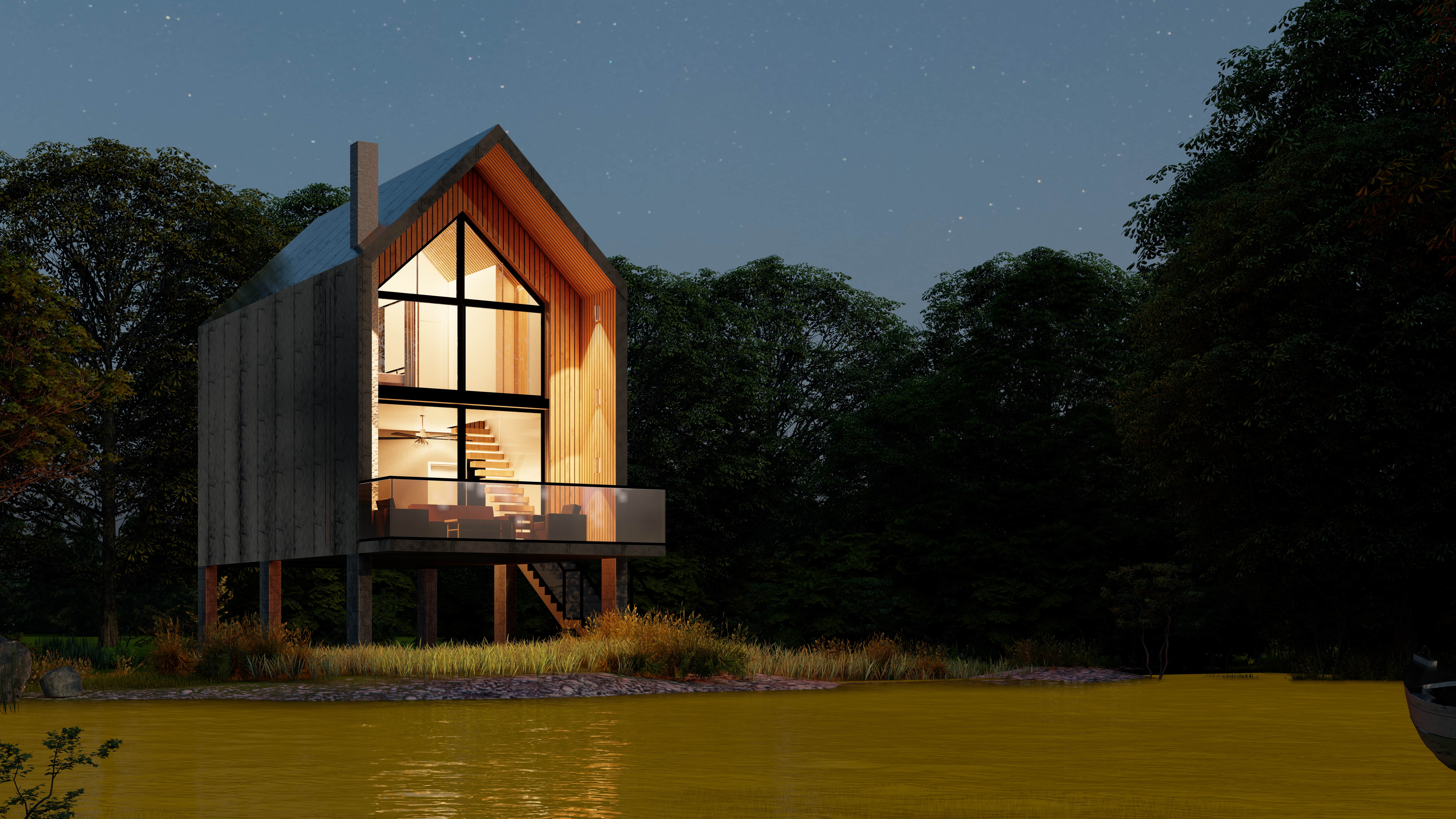 Sam objekat se nalazi na stubovima koji su izdignuti u odnosu na teren, sa pločom koja je prepuštena za terasu.